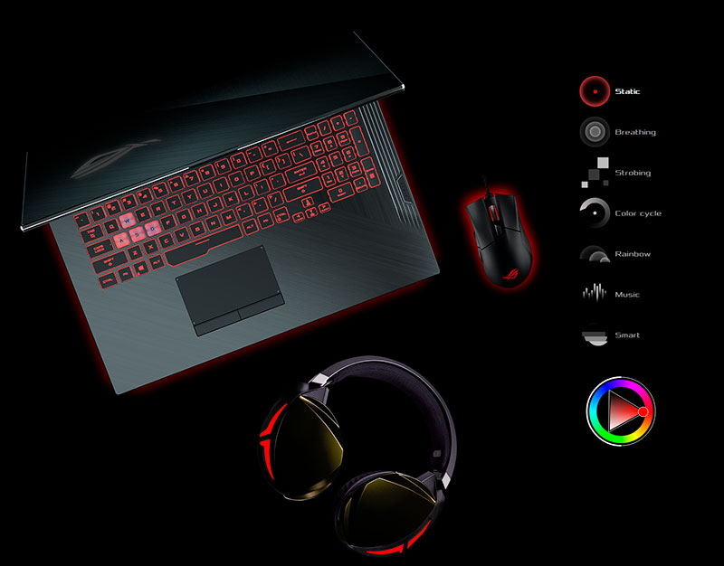 Более того, с помощью программного комплекса ROG Armoury Crate подсветку ноутбука можно синхронизировать с подсветкой других компонентов Asus ROG.