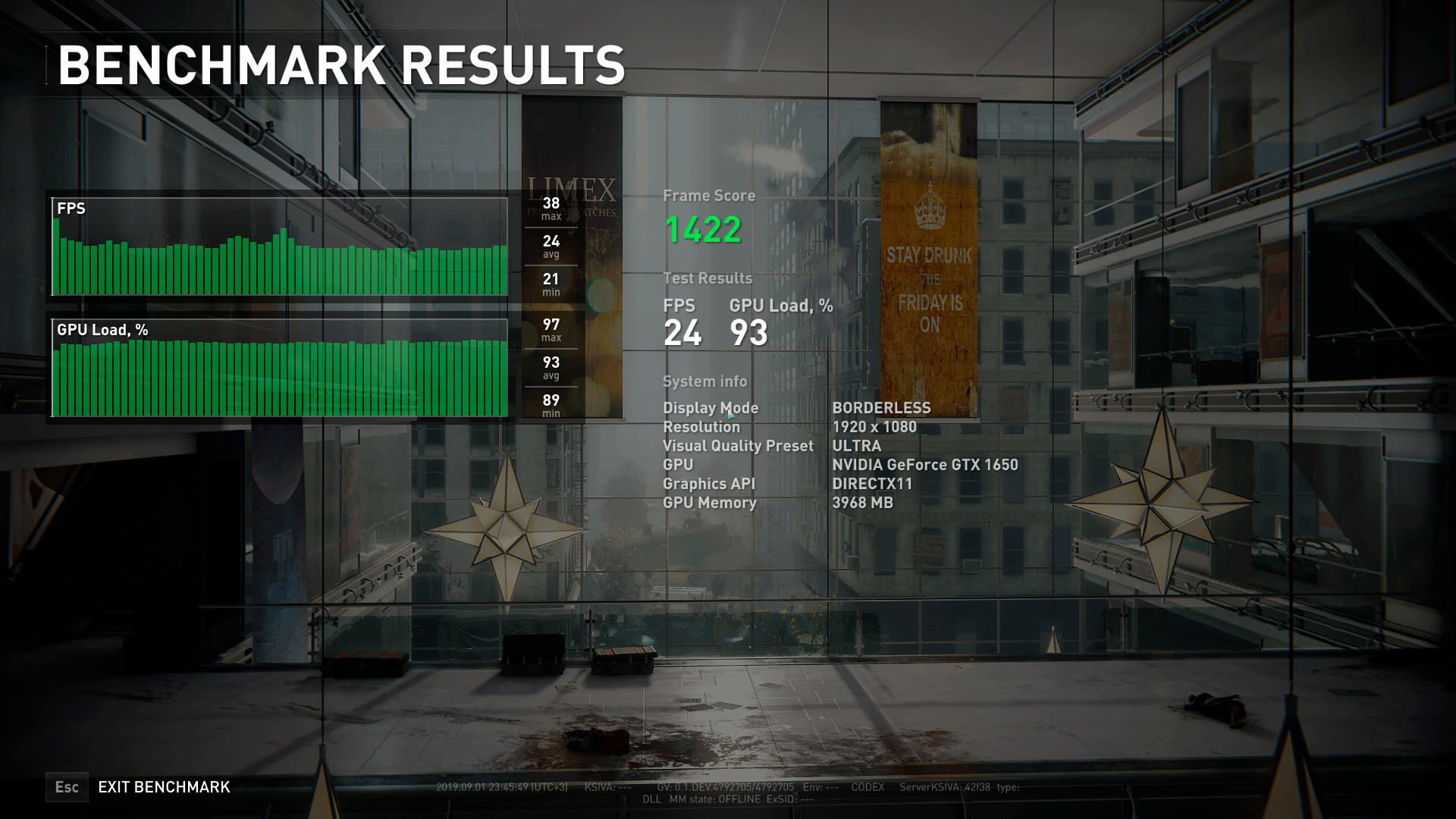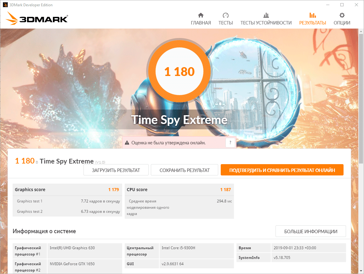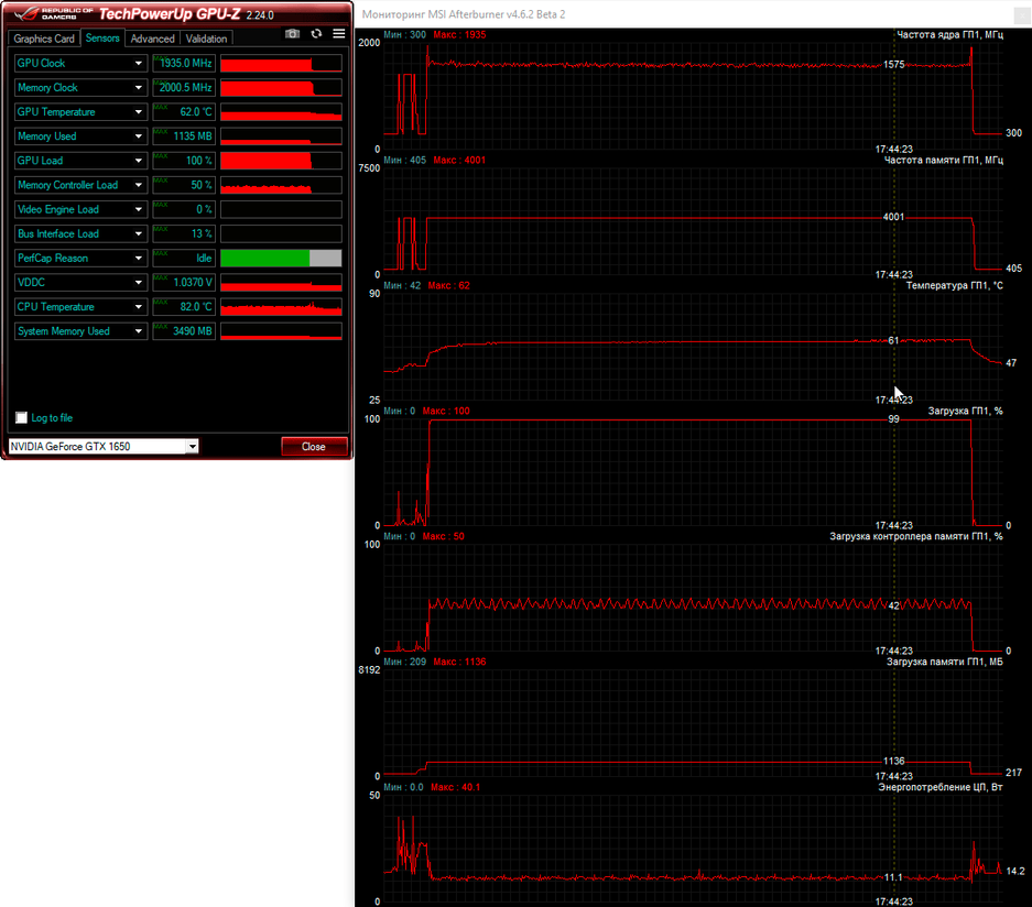 Далее перейдём к проверке графической подсистемы нового ноутбука, в качестве которой, напомним, используется довольно скромная по современным меркам видеокарта NvidiaGeForceGTX1650. Она нагружалась тестом стабильности FireStrikeExtreme из пакета 3DMark, а для мониторинга использовалась незаменимая MSI Afterburner. Сначала результаты тестирования при питании от электросети.