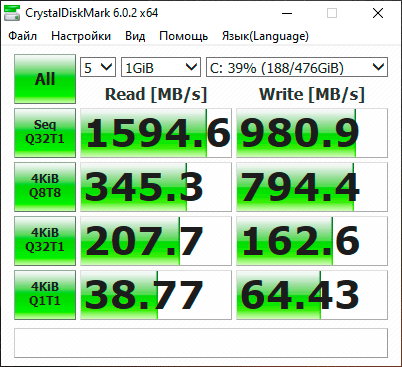 CrystalDiskMark (аккумулятор)