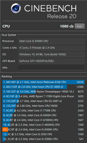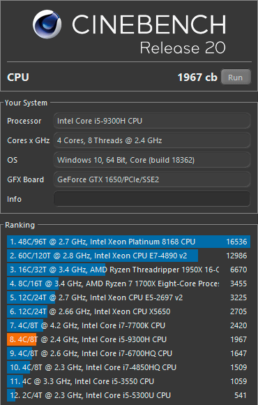Cinebench R20 (Turbo, сеть)