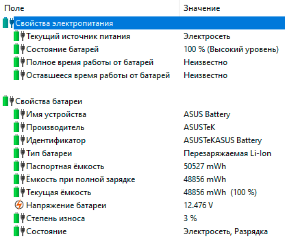 Если непрерывно смотреть видео в разрешении 1920×1080 пикселей с битрейтом около 14 Kв тихом режиме работы при 50% яркости экрана и 25% уровне звука, то полного заряда хватит на 3 часа и 12 минут. При меньшей яркости экрана это время наверняка было бы увеличено, но слишком уж неяркий экран у данной модели. В сбалансированном режиме работы от аккумулятора на Asus ROG Strix GL531GT можно играть в течении 1 часа и 11 минут, а при активации тихого режима это время увеличивается ещё на 7 минут (нижняя граница заряда – 5%).