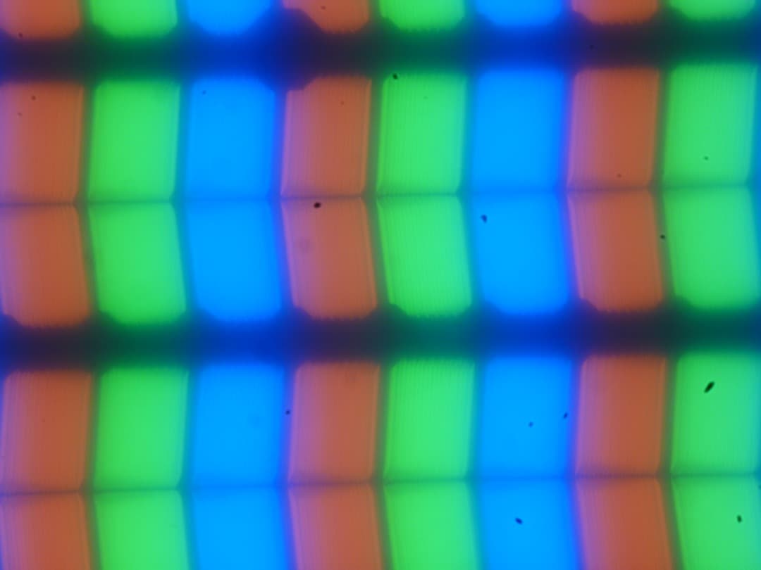 В Asus GL531GT-AL239 используется матрица типа IPS. Микрофотографии демонстрируют типичную для IPS структуру субпикселей (чёрные точки — это пыль на матрице фотоаппарата):