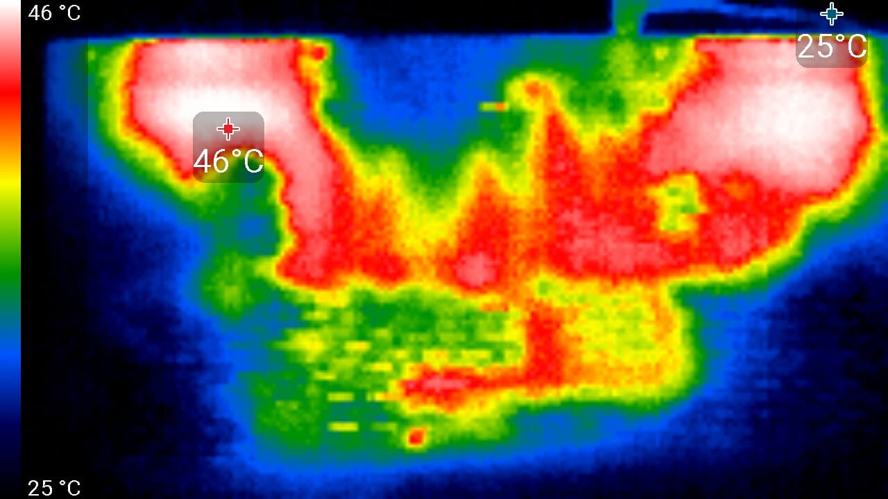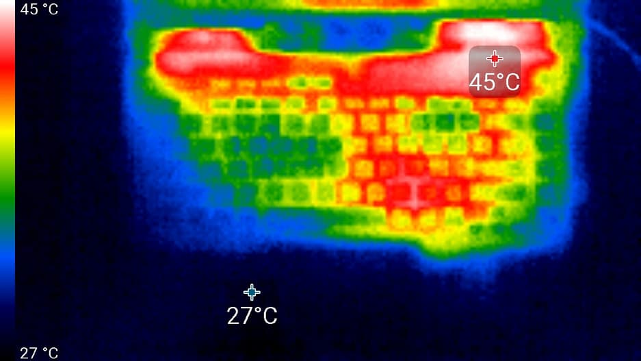 Ниже приведены термоснимки, полученные после долговременной работы ноутбука под максимальной нагрузкой на CPU и GPU: