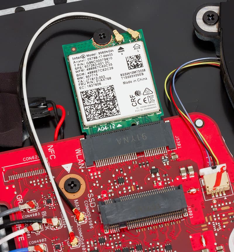 Кабельная сеть в ноутбуке реализована гигабитным контроллером Realtek RTL8168/8111, беспроводная – модулем Intel 9560NGW с поддержкой Wi-Fi 802.11ac (2 × 2) и Bluetooth 5.0.
