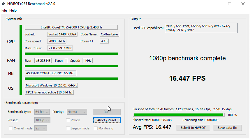 HWBOT x265 (Balanced, аккумулятор)