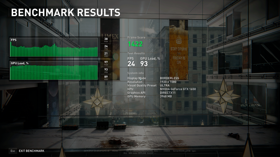 В этом случае частота графического процессора варьируется в диапазоне 1140-1180 МГц, а частота видеопамяти снижается до 7000 МГц. Благодаря этому, температура графического процессора не превышает отметку 52 градуса Цельсия. Это положительный момент с точки зрения экономии ресурсов ноутбука, но, как вы понимаете, отрицательный с точки зрения производительности. На сколько она снижается, мы увидим по следующим четырём парам результатов.