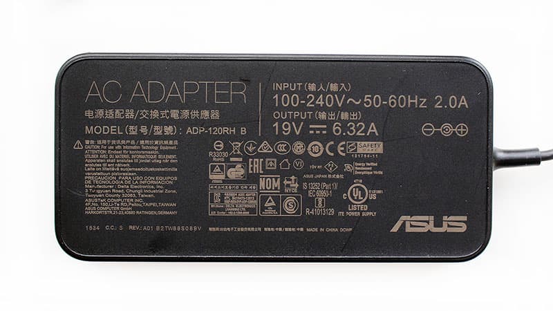 В комплект с Asus ROG Strix GL531GT входит адаптер питания мощностью 120 Вт (19,0 В; 6,32 A).