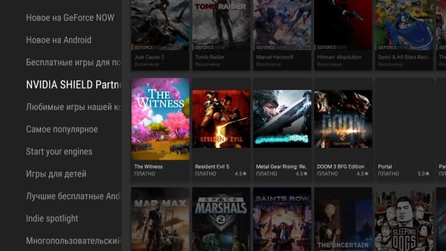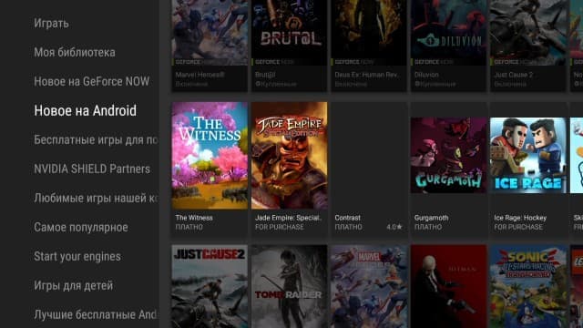 Для выбора игр используется утилита Nvidia Games, в которой нужно будет использовать аккаунт пользователя для сохранения его данных и настроек в облаке. Игры здесь представлены в удобном меню, с разбивкой по жанрам и другим критериям. Выбранные проекты запускаются практически моментально — от нажатия на кнопку «Играть» до запуска проходит не более 20 секунд (разумеется, при наличии быстрого интернет-доступа). При этом проекты занимают на встроенном диске приставки не более 100 КБ, так что объём накопителя не будет ограничивать их количество.