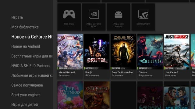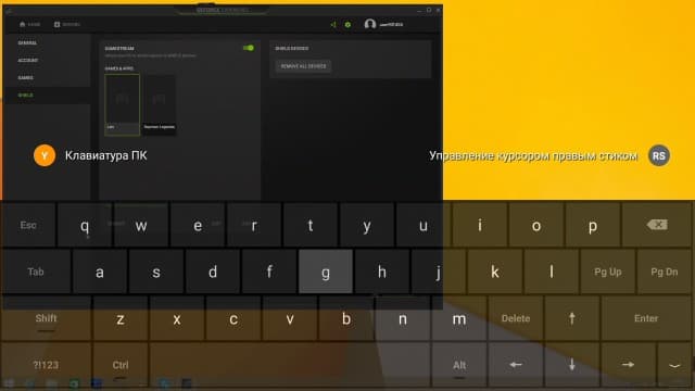 Если вы уже имеете современный и достаточно мощный игровой компьютер (конечно, с видеокартой Nvidia), то у вас появляется возможность трансляции с него на приставку Nvidia Shield для игр на большом экране без необходимости переносить компьютер или перекоммутировать провода. Сервис поддерживает режимы до 4K 60 fps, HDR, многоканальный звук, обратную связь для вибромоторов в геймпаде, передачу аудиоинформации с гарнитуры на контроллере. Заметим, что часть функций требует и поддержки в игре. Число поддерживаемых игр заявлено как «сотни».