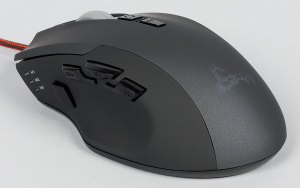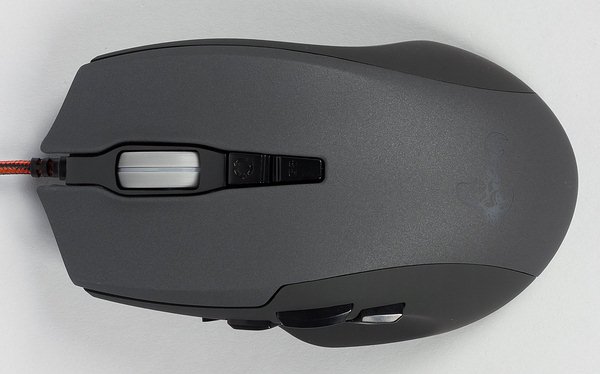 Эргономичная форма под правую руку с площадкой и углублением для большого пальца встречается во многих мышах даже без поправки на игровое позиционирование, однако использование светло-серого матового софт-тач (soft-touch) пластика в верхней части и темно-серого по бокам, оригинальная форма 4 боковых кнопок и логотип того самого скорпиона обеспечивают устройству если не концептуальность, то как минимум узнаваемую внешность.
