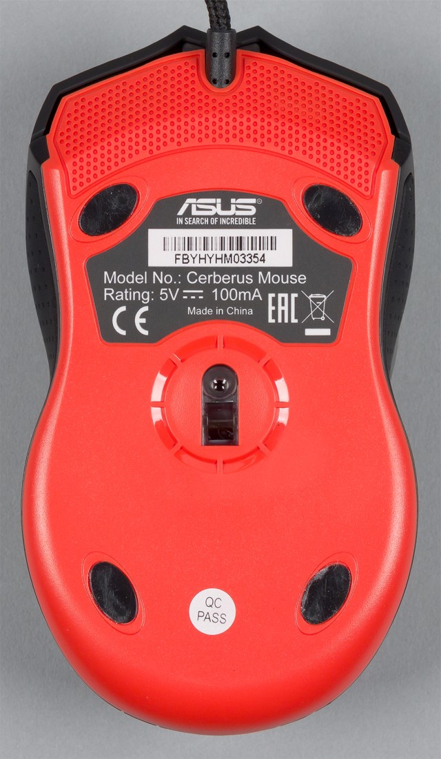 Интересно, что оптический сенсор Avago ADNS-5050 поддерживает разрешения от 125 до 1375 точек на дюйм с шагом 125 dpi. Однако Asus Cerberus может работать с разрешением сенсора в 2500 dpi, а значит, в манипуляторе применена фирменная прошивка, позволившая сделать характеристики мыши вполне приемлемыми для игр.