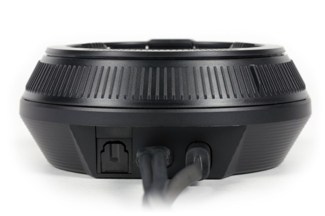 Второе ответвление имеет совсем небольшую длину, поскольку необходимо для подключения смартфона, который всегда должен быть под рукой. Рядом с двумя кабелями располагается оптический разъем, с помощью которого на гарнитуру можно вывести многоканальный звук лучшего, по сравнению с RCA, качества. Но для этого придется отдельно приобрести оптический кабель. Если подключение к телефону не используется, маленький кабель микшера можно прикрепить к более крупному с помощью специальной прищепки.