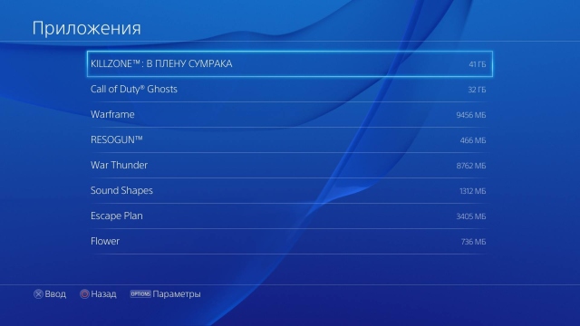 К сожалению, нет никакого способа как-то отсортировать приложения в нижней строке. Они выстраиваются сами, в зависимости от времени их последнего запуска. Пока это не проблема, дискомфорта данное решение не вызывает. Однако база игр будет понемногу расширяться, и многие из них просто затеряются в конце длинного списка. Там же, в конце списка, стоит пиктограмма «Библиотеки», в которой сразу видны все купленные в PlayStation Store игры, независимо от того, загружены они в систему или нет.