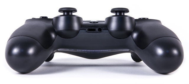 Между рукоятками, на нижней стороне геймпада располагаются стандартный разъем мини-джек на 3,5 мм для проводной гарнитуры и порт EXT. Последний пока используется только для установки DualShock 4 на специальные зарядные станции, но похоже, что у него есть и другие, пока не анонсированные функции.
