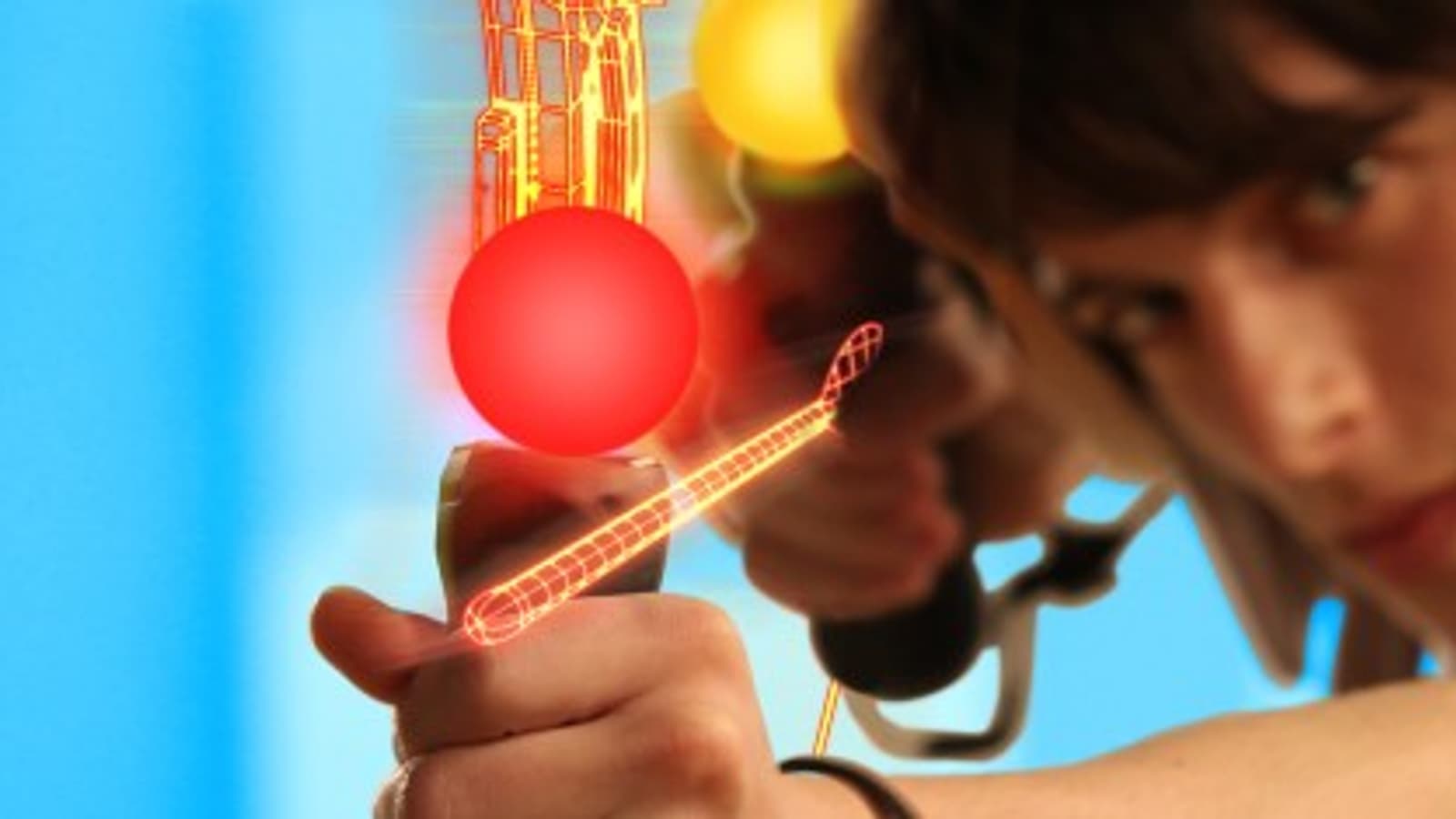 Что в результате получится из Kinect от Microsoft мы узнаем только в ноябре. Компания решила сделать радикальный шаг и вообще избавиться от контроллеров, превратив самого игрока (при помощи специальной камеры, снимающей движения человека) в игровой интерфейс. Шаг сомнительный, уже опробованный Sony в прошлом поколении консолей (EyeToy), и оттого еще более настораживающий, поскольку «интерфейс без кнопок» годится только на какие-нибудь прыгалки и танцевалки. Представленная стартовая линейка проектов для Kinect это подтверждает. Впрочем, подождем ноября, тогда и будем судить.Sony же решила пойти по пути, проторенной Nintendo, предложив похожую концепцию управления при помощи специального контроллера, получившего название PlayStation Move Motion Controller (или PS Move, далее просто Move), только с существенным преимуществом - точностью и отсутствием задержки сигнала. Последние являются ахиллесовой пятой Wii, поскольку инфракрасный датчик очень приблизительно и с явным запаздыванием угадывает место и положение «вимота».На первой презентации Move в 2009 году на выставке E3 сложно было поверить, что он работает именно с той точностью, как показывали разработчики в многочисленных демо-сценах. Возникало ощущение, что его можно запросто превратить в любой инструмент для воздействия на виртуальное пространство - хоть в хирургический скальпель для операций на сердце для тренировки хирургов - настолько хороша чувствительность. Нам показывали почти настоящую стрельбу из лука, бои на мечах, складывали кубики в башни, расстреливали мишени в тире, поражая легкостью и простотой управления.