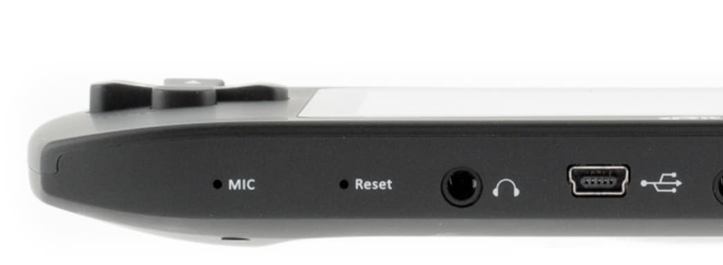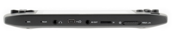 Все остальные функциональные элементы вынесены на нижнюю сторону: встроенный микрофон, отверстие для аппаратной перезагрузки, разъемы USB и AV-out, слот для карты памяти microSD, а также ползунок включения/блокировки.