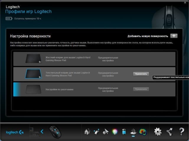 В шестом разделе можно выбрать тип коврика, который применяется пользователем, что должно положительно сказаться на точности позиционирования курсора.