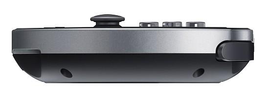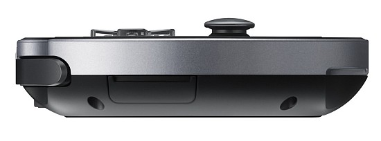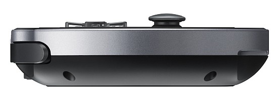 На верхней грани есть кнопка питания, крышка, под которой скрывается гнездо для игровых флэш-карт, и крышка, закрывающая слот для подключения аксессуаров (пока не анонсированных). Рядом располагаются кнопки для регулирования громкости звука. Справа и слева по краям находятся традиционные бамперы L и R.