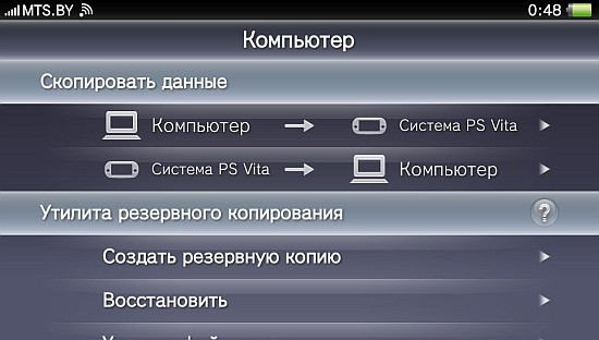 Для работы с компьютером используется новая программа “Помощник по управлению данными” с минимумом функций. Он позволяет только сохранять или восстанавливать файлы. Странно, что Sony отказалась от использования программы Media Go, совместимой с PSP и предлагающей схожие функции.