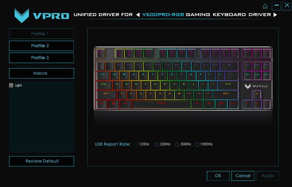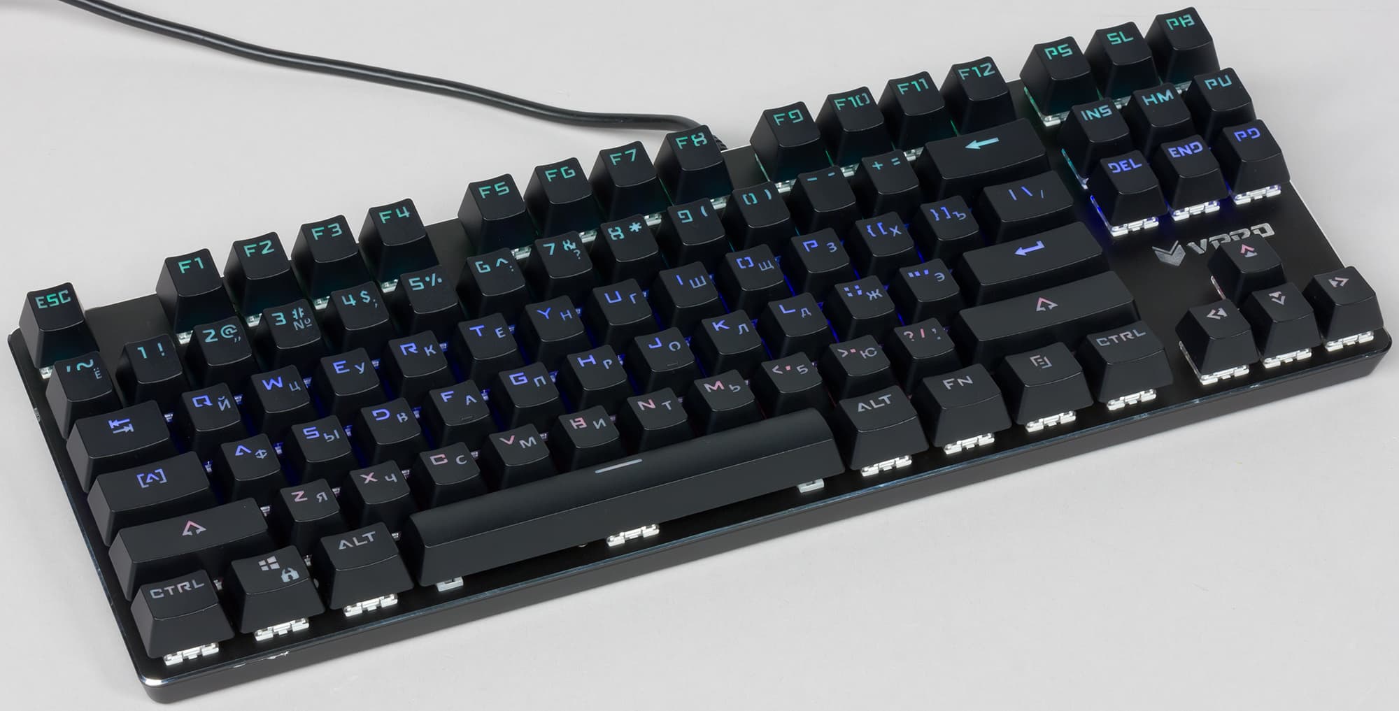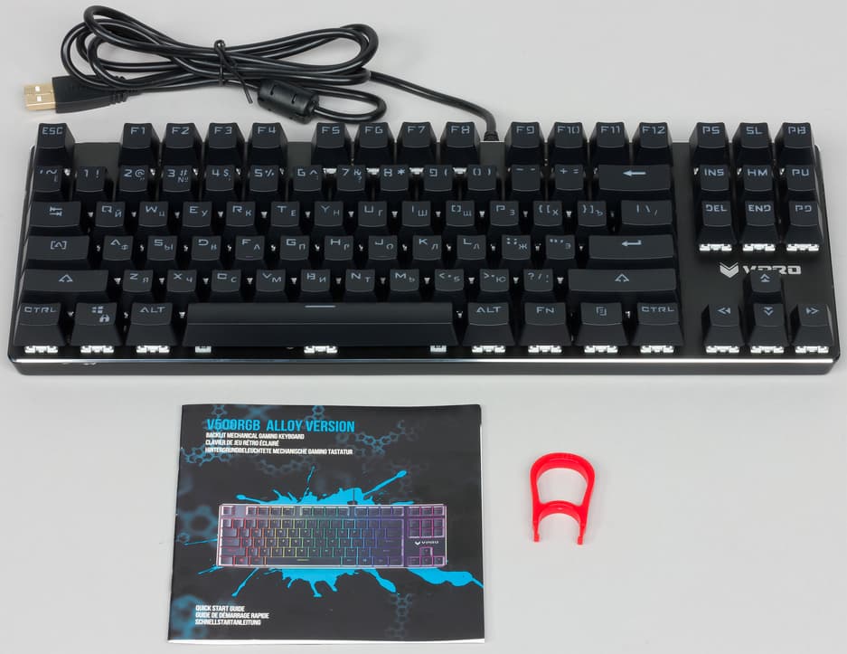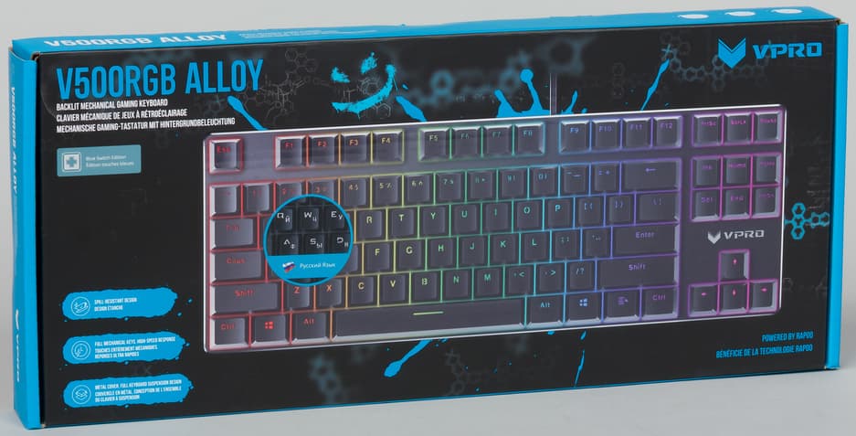 Rapoo V500RGB Alloy — очень компактная и приятная как на вид, так и в использовании механическая клавиатура. Если вам нравятся синие переключатели и скелетная компоновка, а вес и отсутствие дополнительных клавиш не смущают, то можно смело рассматривать модель в качестве кандидата для покупки.