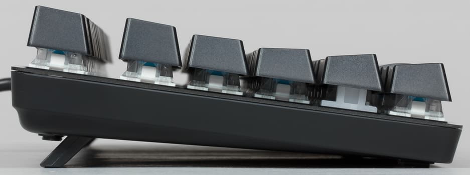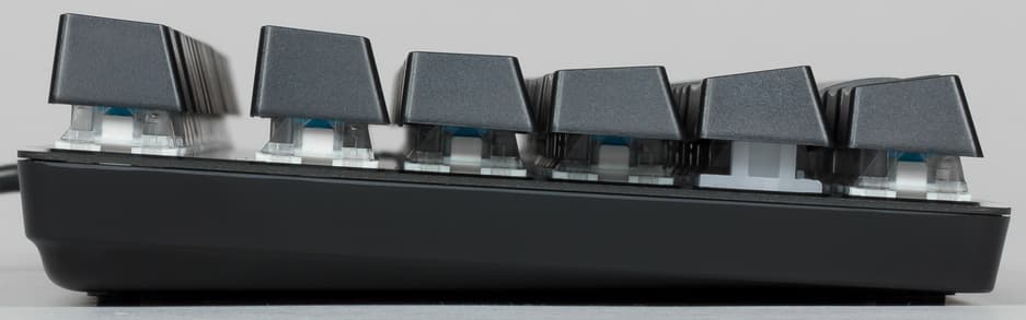 Клавиши имеют характерный для механических клавиатур подъём над рабочей поверхностью.