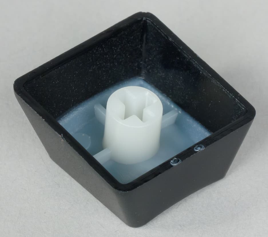 Все широкие клавиши (Backspace, Shift, Enter) снабжены дополнительными стабилизаторами по краям, что позволяет им двигаться без существенного перекоса. На предыдущем фото хорошо заметны стабилизаторы пробела. На фото ниже — стабилизаторы клавиши Shift.
