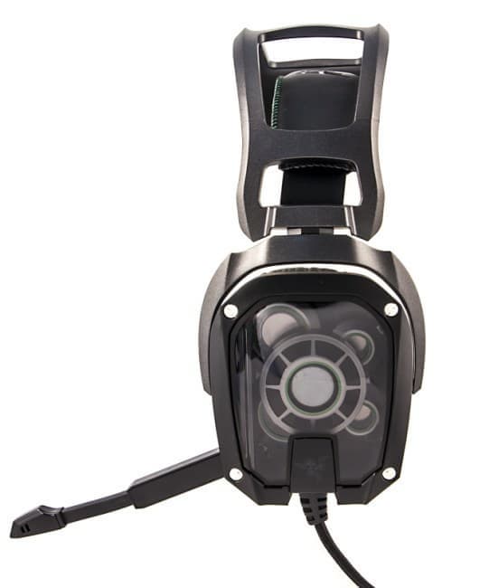 По умолчанию симметричные чашечки имеют прозрачное наружное покрытие, чтобы пользователь мог оценить, что в каждой из них действительно установлено пять динамиков. Логотипы Razer подсвечиваются ядовито-зеленым, когда гарнитура включена.