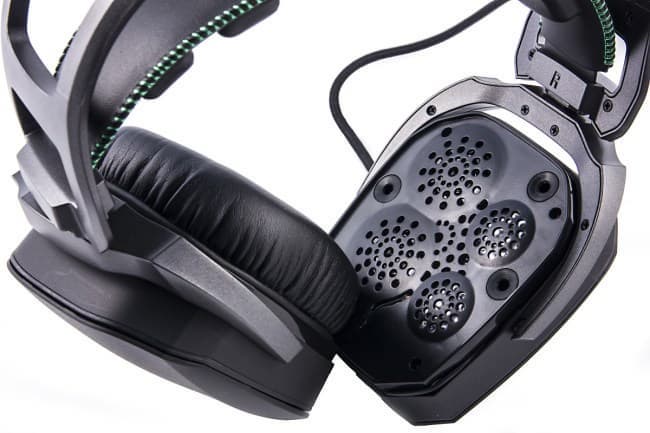 Чашечки закреплены так, чтобы иметь по отношению к оголовью люфт как по вертикали, так и по горизонтали. Амбушюры из кожезаменителя изящно прикрепляются к наушникам без каких-либо дополнительных винтиков.