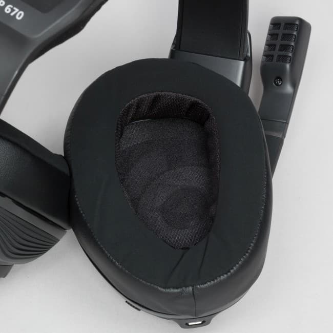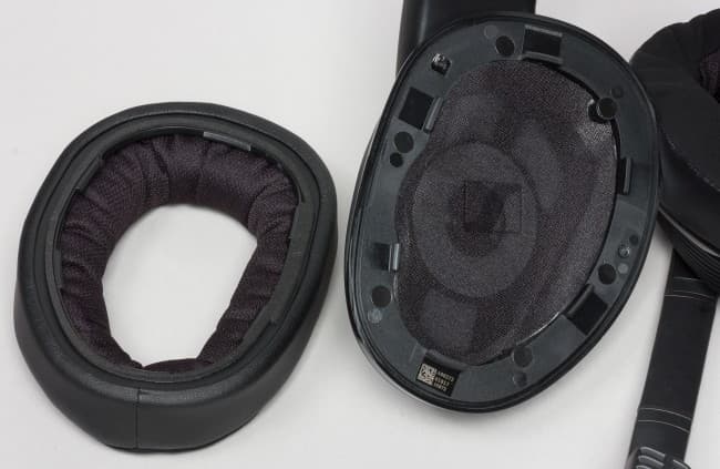 Амбушюры выполнены из мягкой на ощупь синтетической кожи, а прилегающая к голове слушателя часть сделана из замшеподобного материала, хорошо пропускающего воздух, что предотвращает дискомфорт от пота. Амбушюры плотно прилегают к голове слушателя и обеспечивают хорошую изоляцию от внешних звуков. Динамики внутри прикрыты звукопроницаемой тканью с нанесённым логотипом Sennheiser.