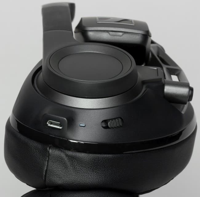 На левой чашке закреплён микрофон, который в верхнем положении автоматически выключается. Штанга гибкая, но заданную форму не сохраняет. По заявлению Sennheiser, микрофон соответствует студийному качеству звукопередачи. Внизу левой чашки расположена кнопка управления, которая при перемещении и удержании в течение двух-трёх секунд в нижнем положении активирует беспроводный режим, и гарнитура становится доступной для сопряжения по Bluetooth.