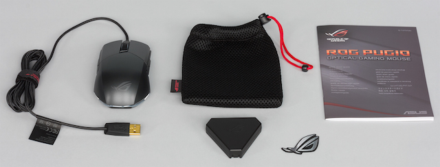 А вот комплект поставки уже явно выделяет рассматриваемое решение из общей массы игровых продуктов — кроме самой мышки в коробке пользователь найдёт мешочек для её переноски, фирменную наклейку с логотипом ROG, коробочку с заменяемыми частями и инструкцию.