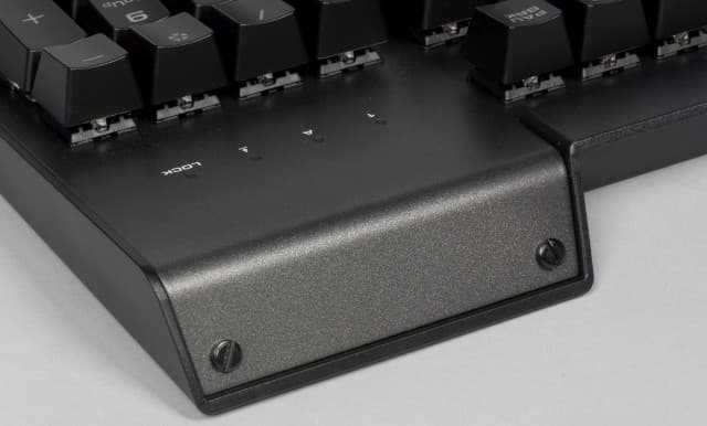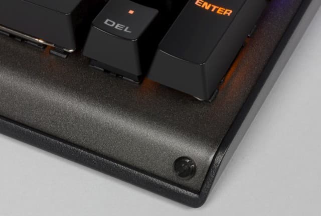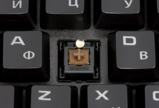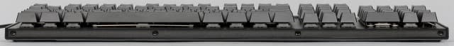 Переключатели отличаются наличием тактильного отклика и отсутствием звука щелчка срабатывания. Подобное сочетание позволяет считать их универсальными — подходящими и для игр и для набора текста. Ну и, конечно, ваши домочадцы оценят невысокий уровень шума от работы на этой модели. Он, разумеется, выше, чем у мембранных моделей, но заметно меньше, чем на «щёлкающей» механике. Клавиши возвышаются над стальной пластиной корпуса, что позволяет относительно легко чистить устройство.