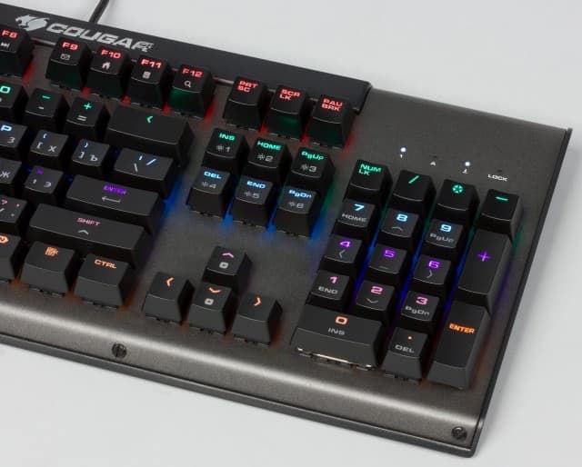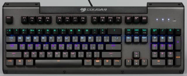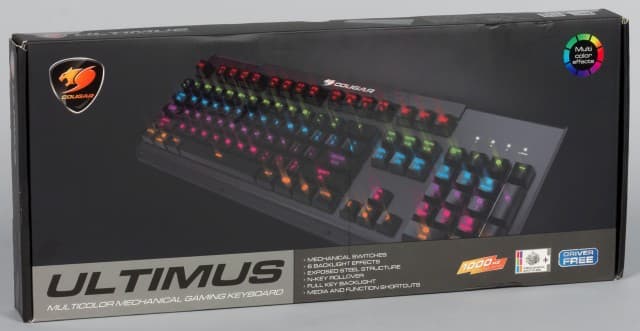 В настоящий момент на отечественном рынке предлагается около десятка игровых клавиатур этого бренда. Cougar Ultimus позиционируется в центр линейки и выделяется наличием механических переключателей, стальной базы и подсветки. Кроме того, эта модель обеспечивает распознавание одновременного нажатия любого числа кнопок благодаря режиму N-Key Rollover.
