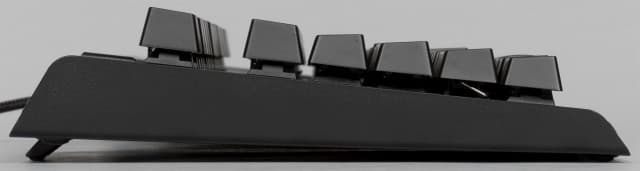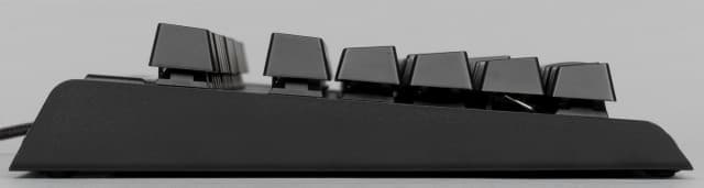 Как мы уже писали выше, клавиатура отлично стоит на столе благодаря своему весу и хорошим резиновым ножкам. Передний край клавиатуры расположен достаточно высоко, так что возможно вам потребуется дополнительно приобрести подставку под запястья. А вот дальний край, наоборот, заметно поднять не получится.