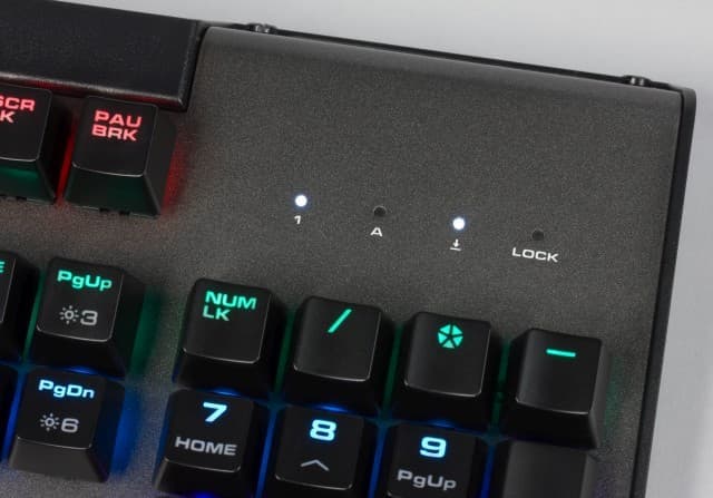 Раскладка клавиатуры стандартная — на 104 клавиши для устройств с цифровым блоком. Никаких дополнительных кнопок у неё нет. Обратить внимание можно если только на четвёртый индикатор.