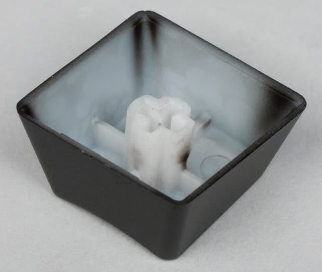 Колпачки клавиш изготовлены из полупрозрачного пластика и покрашены снаружи чёрной матовой краской. Обозначения на клавишах выполнены в виде отсутствия краски. При этом из-за того, что пластик всё-таки имеет белый наполнитель, они хорошо видны и при отсутствии подсветки.