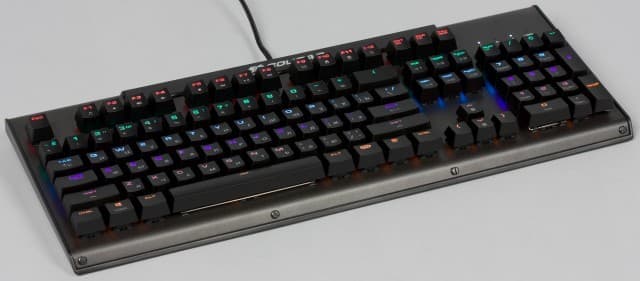 В целом конструкция выглядит монолитной и очень крепкой. Ничего не прогибается и не скрипит, щелей не заметно. Визуально при выключенной подсветке сложно отнести данное устройство к игровому классу. Здесь нет никаких излишеств в форме или ярко выделяющихся элементов дизайна. Скорее создается впечатление «старины», когда клавиатуры были большими и тяжёлыми, с грубыми формами и ресурсом на пятьдесят лет.