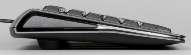 На практике сниженная высота клавиш действительно заметна и положительно влияет на общее восприятие дизайна клавиатуры Apex M800. Высота клавиш — 7-8 мм, свободный ход — 3 мм.