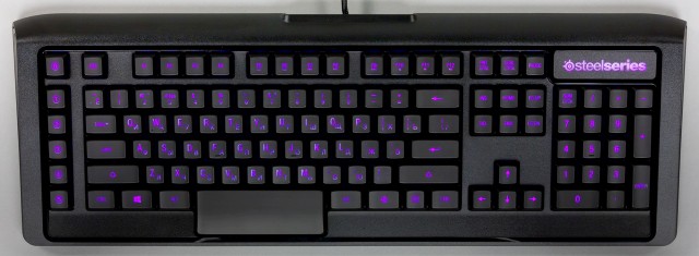 На эти специальные кнопки можно назначить различные действия или запуск приложений с помощью фирменной утилиты SteelSeries Engine 3. Из-за наличия этих специальных клавиш слева весь клавиатурный блок смещен вправо относительно центра примерно на три сантиметра. Однако ощущение, что все смещено вправо, проходит очень быстро и дискомфорта не вызывает.