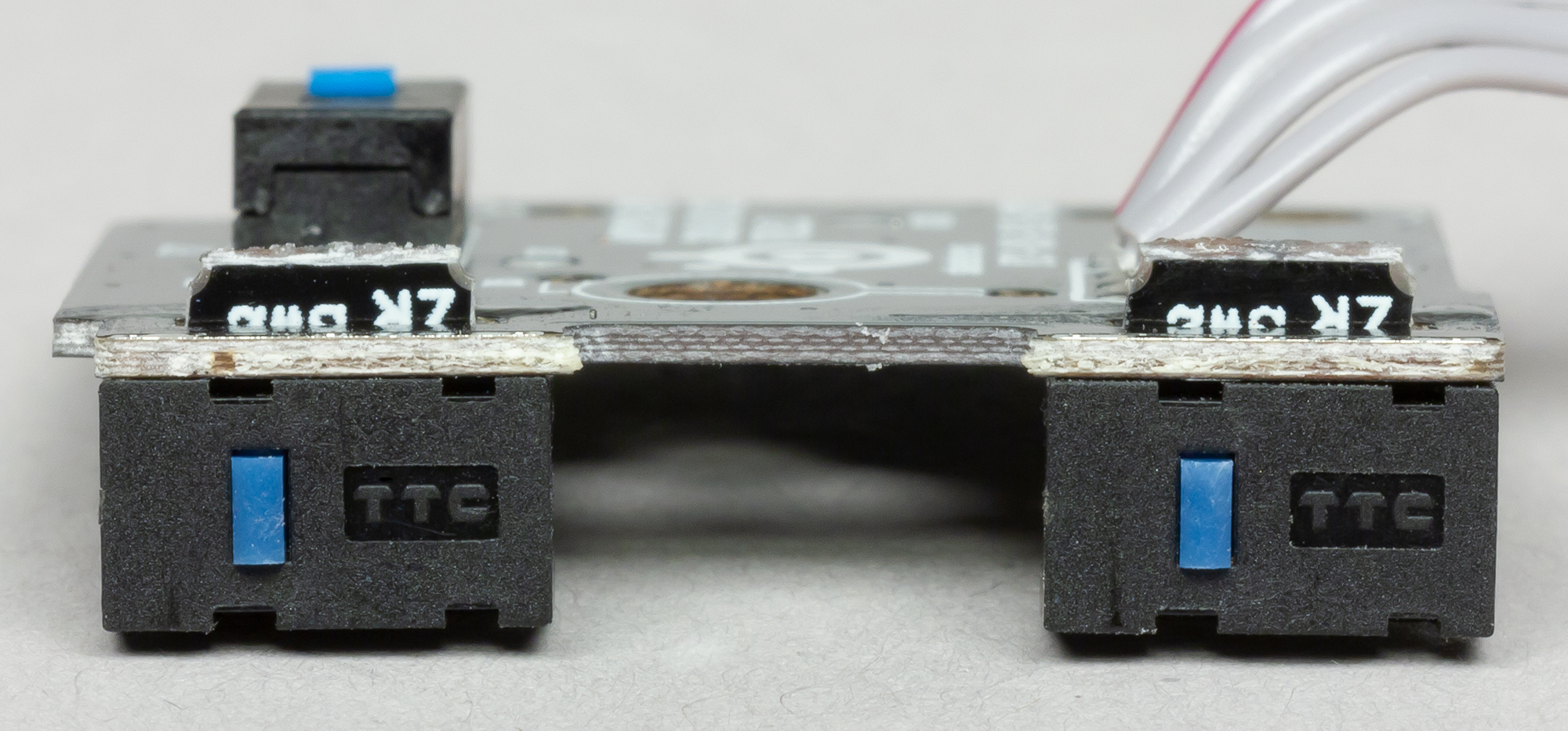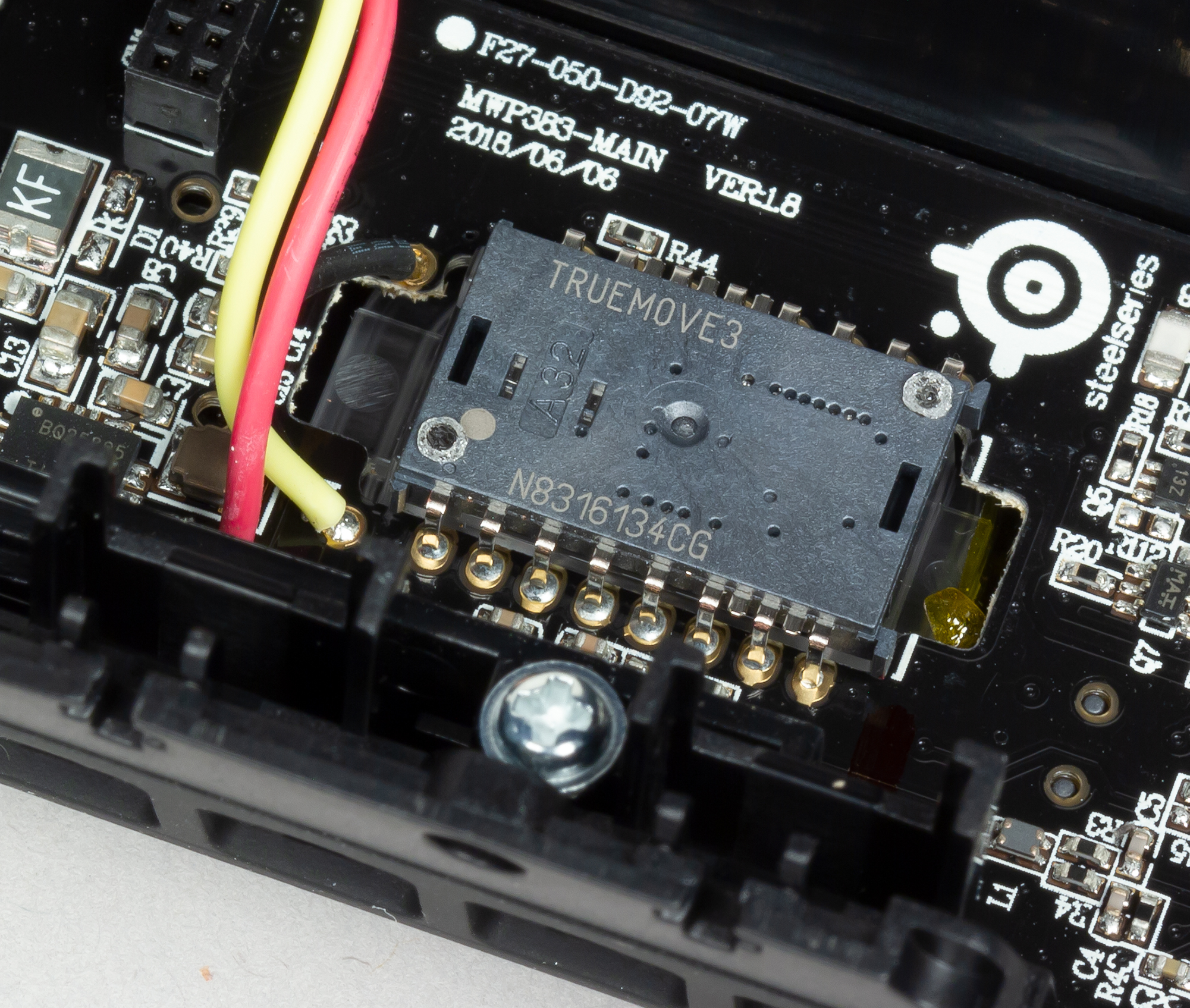 В качестве основных кликеров в мыши установлены фирменные свитчи SteelSeries с заявленным ресурсом в 60 миллионов кликов, на боковых кнопках стоят свитчи TTC.