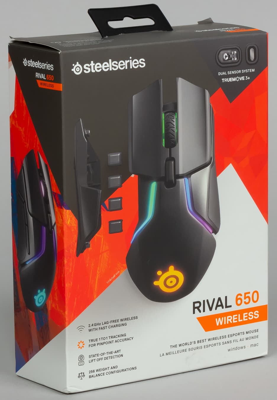 SteelSeries Rival 650 — игровая беспроводная мышь с возможностью менять вес и балансировку при помощи набора грузиков. Помимо основного сенсора, который обладает приличным разрешением в 12 000 CPI, устройство оснащено сенсором отрыва, который не допускает смещения курсора при подъёме манипулятора.