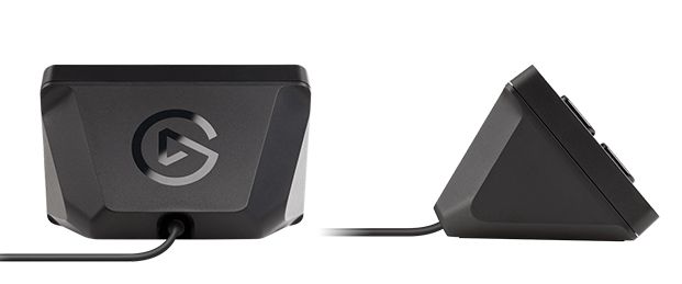 Устройство имеет форму треугольной призмы и небольшие размеры. Одна из граней является основанием с прокладкой из нескользкого материала, вторую украшает логотип, а на третьей находится самое интересное — 6 программируемых кнопок.