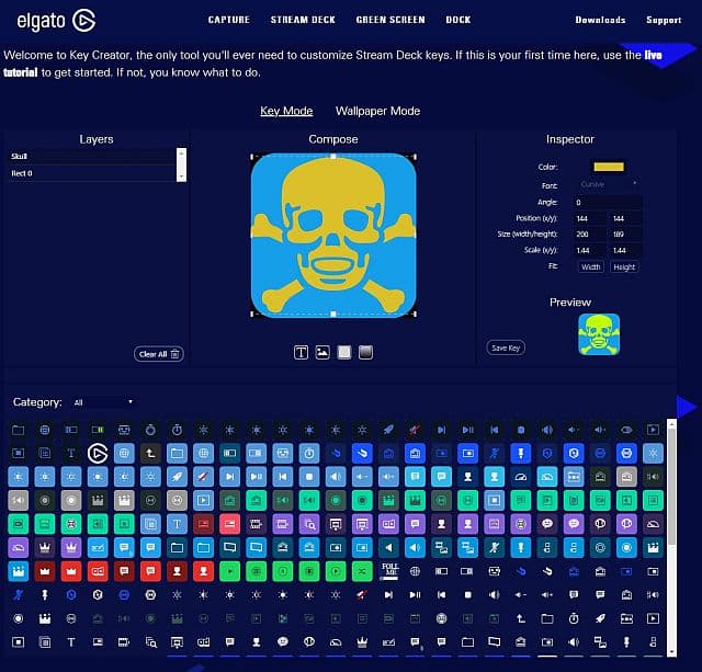 Привязав кнопку к комбинации клавиш, вы можете подписать её (и надпись высветится на экранчике) и привязать к ней картинку размером 72х72 пикселя. Не нравятся предложенные разработчиками Stream Deck варианты? Можете создать свою иконку в онлайновом графическом редакторе, который открывается при выборе опции «Создать свою иконку»! Управление элементарное. Сохраняете получившийся результат на ПК, указываете Stream Deck на файл — и результат вашего творчества превращается в одну из кнопок.