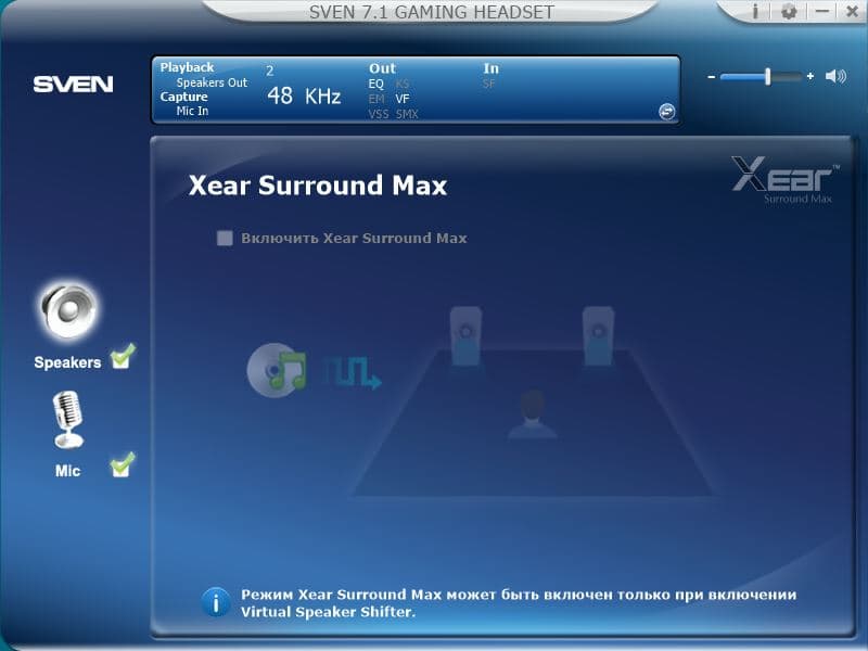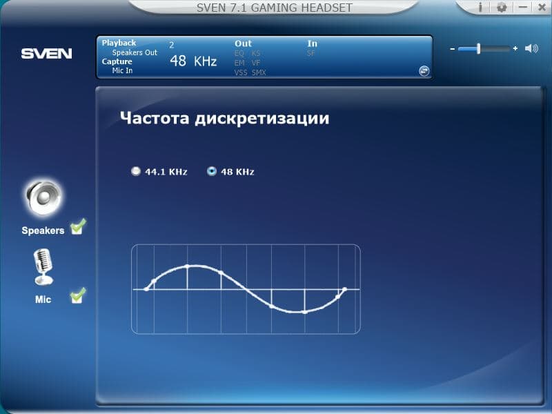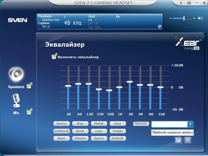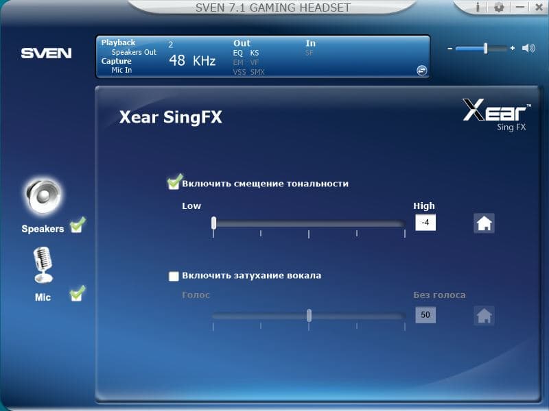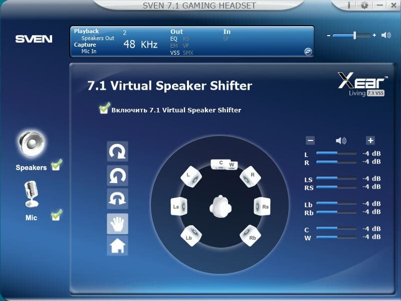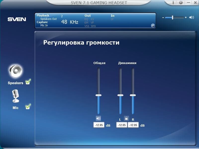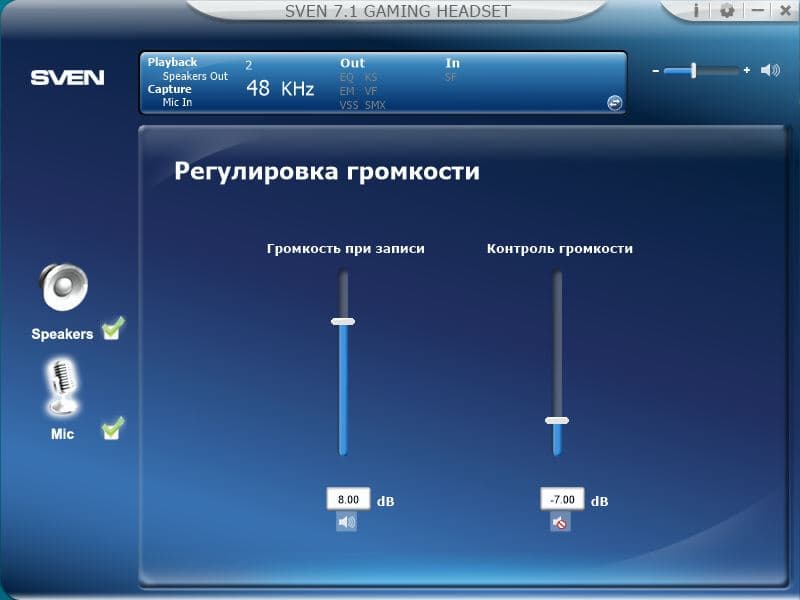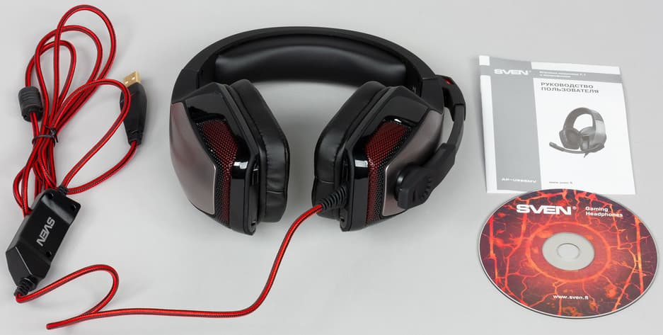 В комплекте с наушниками поставляется фирменное ПО "SVEN 7.1 GAMING HEADSET", посредством которого можно настраивать параметры встроенной в наушники звуковой карты.
