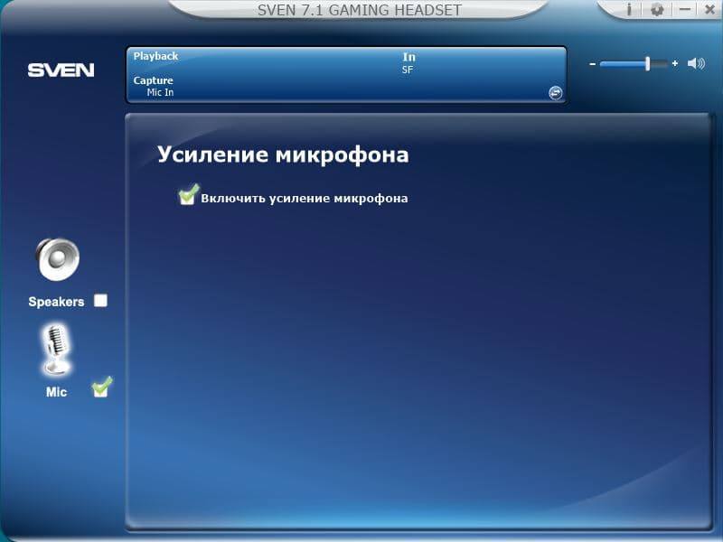 Во втором окне (mic) доступны регулировки уровней микрофона.