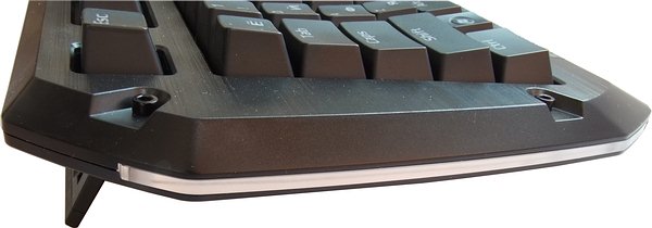 Оригинально выполнен блок светодиодных индикаторов. Во-первых, на нем нашлось место не только для индикации Num Lock и Caps Lock, но и Scroll Lock, что крайне редко встречается в игровых клавиатурах. Во-вторых, крайние индикаторы одновременно являются кнопками активации игрового режима (левый) и непосредственной записи пользовательских сочетаний (правый). В-третьих, индикаторы имеют белый цвет подсветки, при этом реализована постоянная фоновая подсветка логотипа снизу.