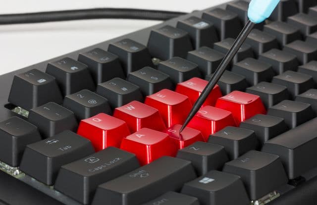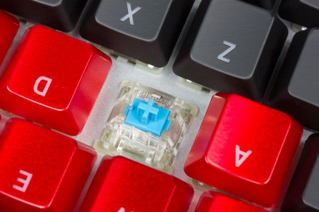 У клавиатуры скелетная конструкция, то есть клавиши приподняты над основанием. В качестве механических переключателей используются Cherry MX Blue с усилием срабатывания в 60 сН и дополнительным тактильным кликом. Общий ход клавиши — 4 мм, ход до срабатывания — 2,2 мм. В переключателях реализован специальный механизм, воспроизводящий клацающий звук при срабатывании, так называемый клик.