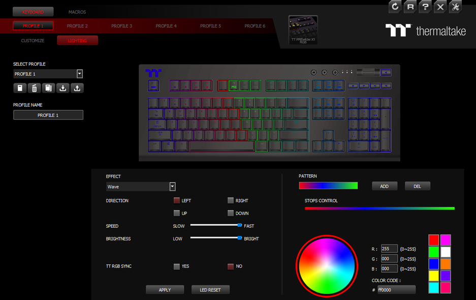 Клавиатурой X1 RGB можно полноценно пользоваться, не устанавливая фирменное программное обеспечение. Все настройки можно выполнять комбинациями клавиш, а созданные профили и макросы хранятся во встроенной памяти. Это удобно, особенно если клавиатуру перемещают между разными ПК.