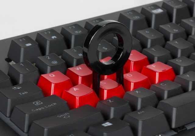 Установка колпачков красного цвета позволяет разнообразить внешний вид клавиатуры, на строгом чёрном поле появляется яркое цветное пятно. Этакий дизайнерский штрих. Дополнительные колпачки обладают более гладкой поверхностью, чем чёрные.