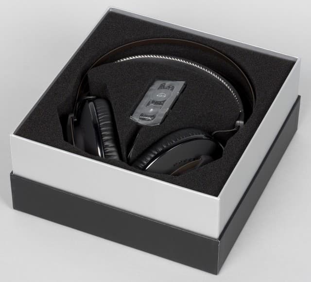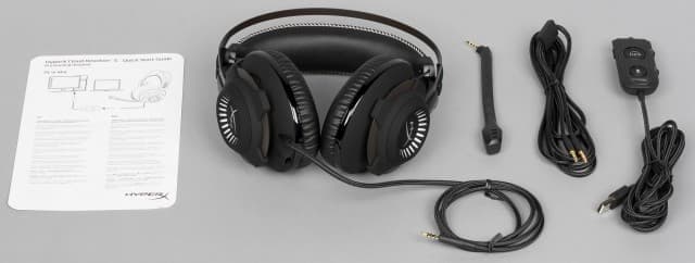 Внутри в специальных вставках из поролона расположена гарнитура и другие элементы комплекта поставки. В него входят: съёмный микрофон на штанге, кабель для работы на ПК с парой джеков и кабель с USB-адаптером. Также присутствует краткая инструкция по подключению к разным устройствам и описанием функций на контроллере.